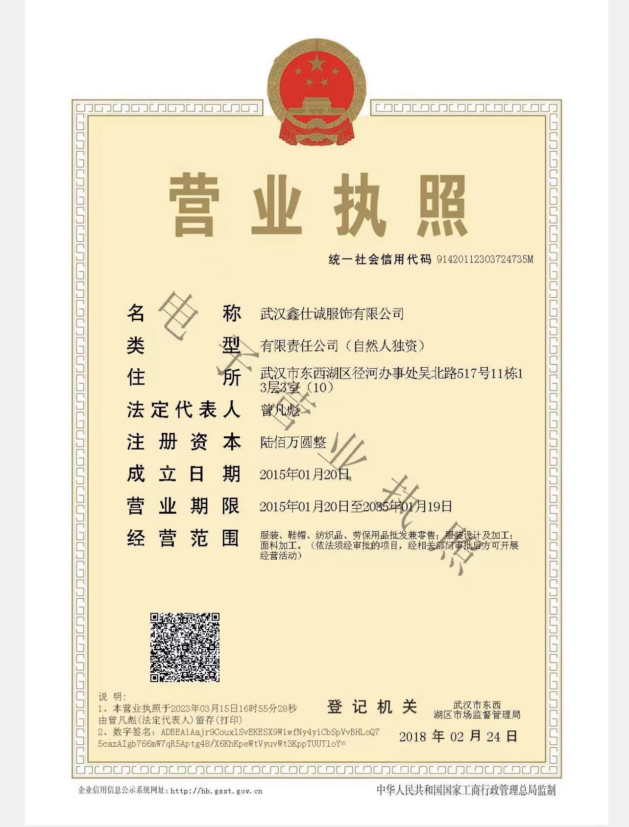 武漢鑫仕誠服飾有限公司